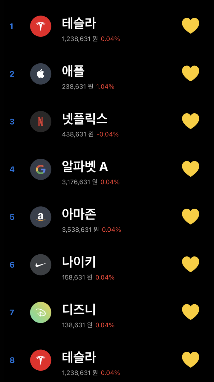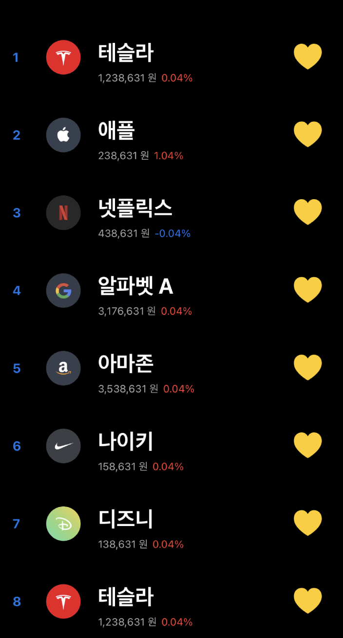 하지만 넷플릭스처럼 값이 떨어졌을때도 빨간색으로 표시되어