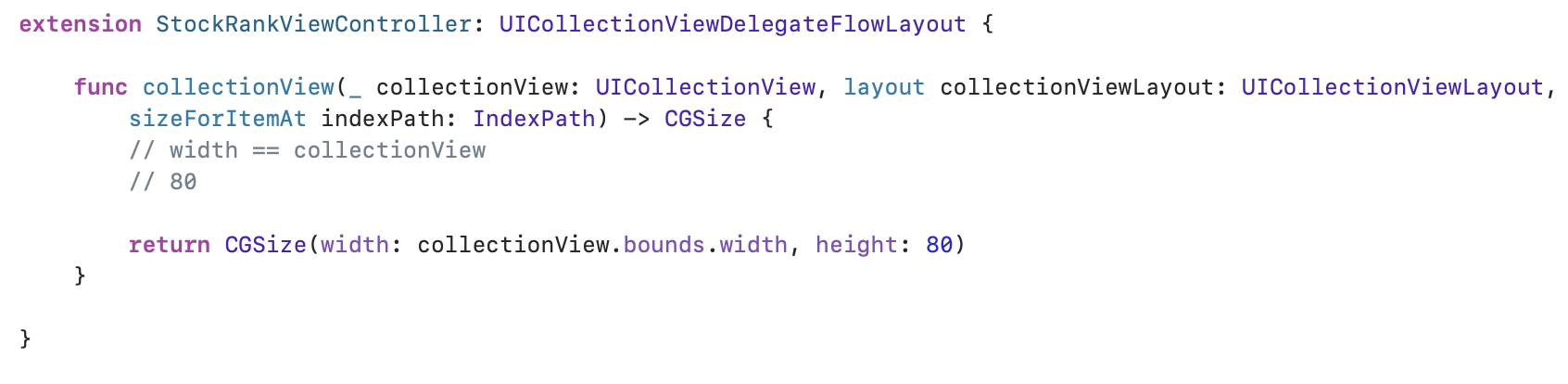 UICollectionViewDelegateFlowLayout 를 채워줘야한다
