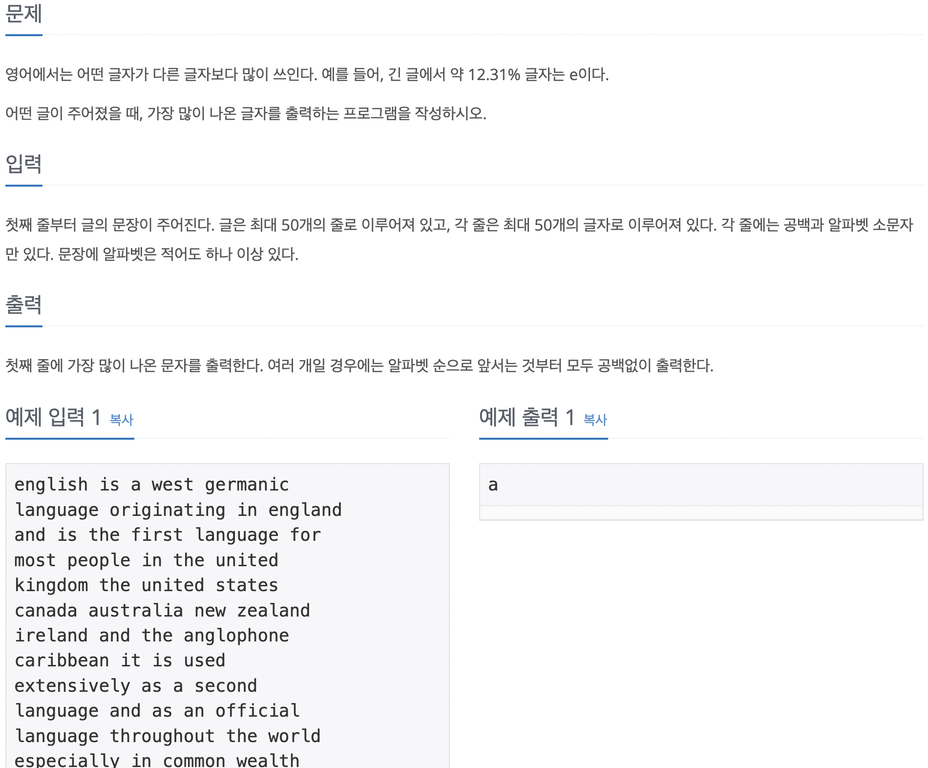 출처 : https://www.acmicpc.net/problem/1371