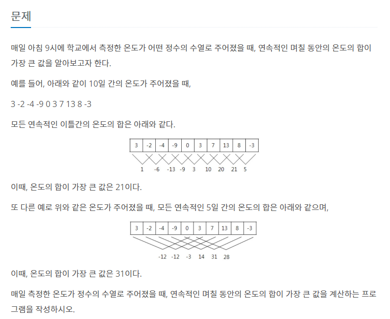 연속적인 며칠 동안의 온도의 합 => 누적 합!