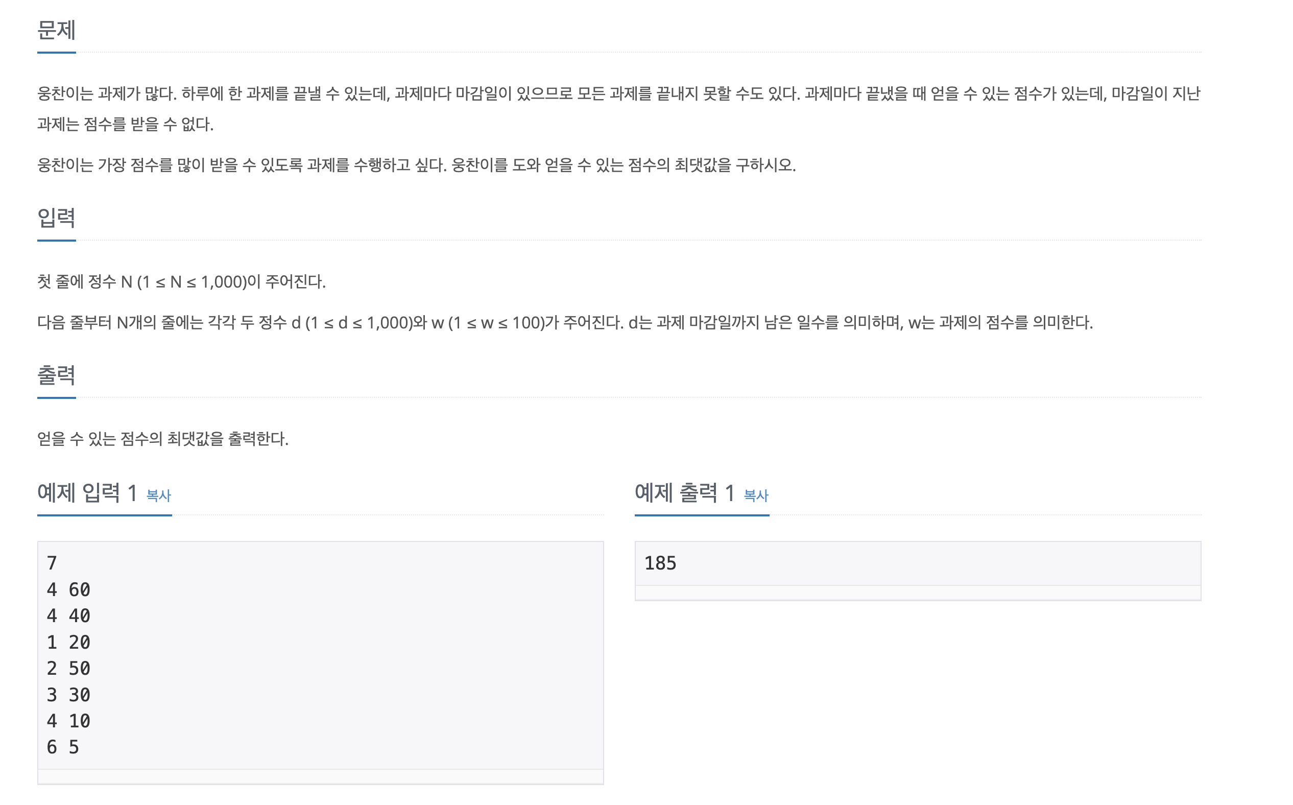 출처 : https://www.acmicpc.net/problem/13904